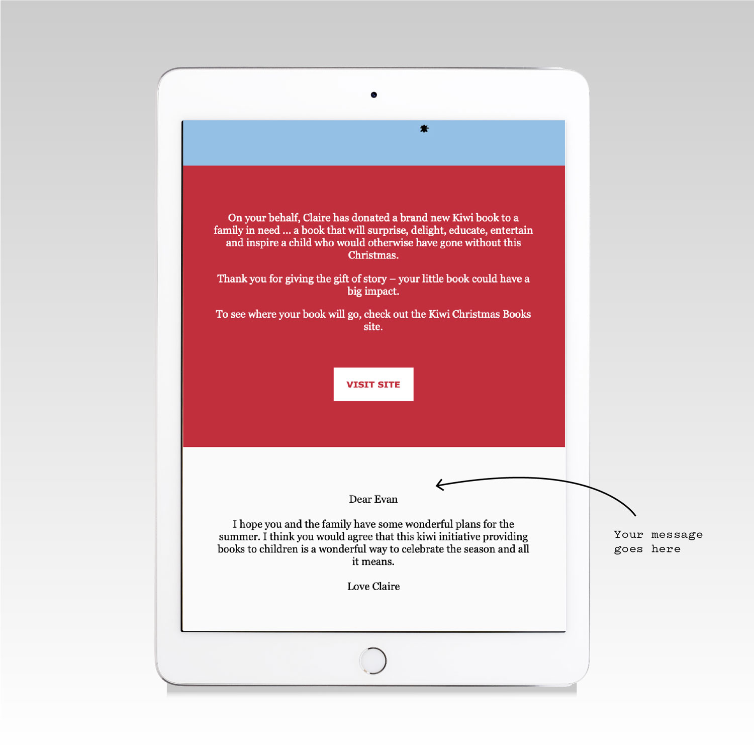 For $30.00, your employee / colleague / mate / Great Aunt Gertrude gets one of our e-cards delivered straight into their inbox — and a child in your town or city gets to unwrap a brand new book for Christmas. You buy the card, we buy the book.